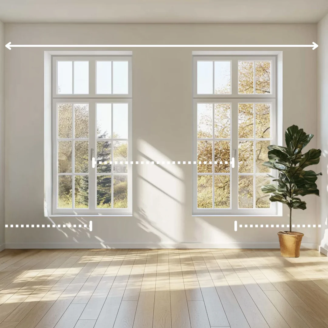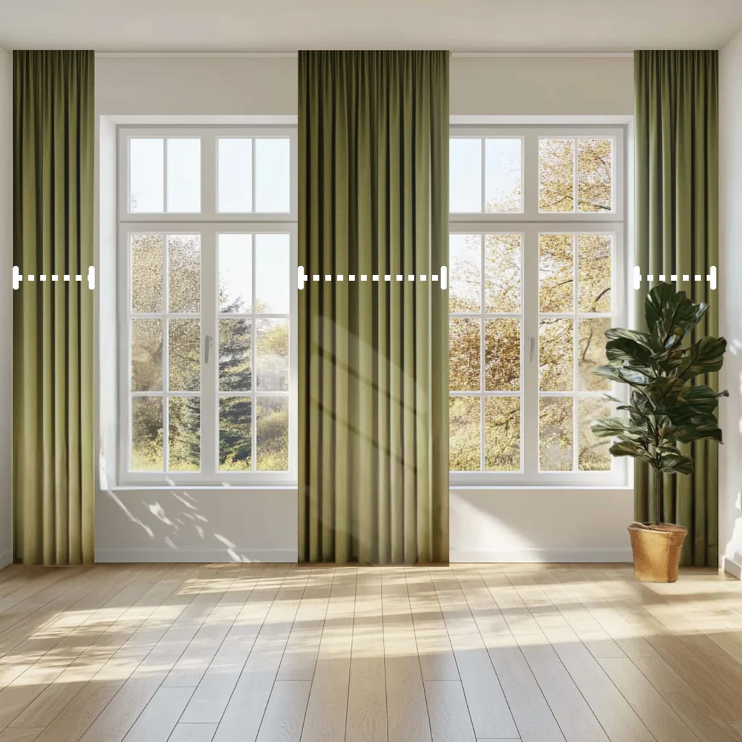 För en svävande look, mät från golv till tak/stuckatur och dra bort 5 cm från tak och 9 cm från stuckatur. Väggskena monteras snyggast 4 cm under stuckaturen. Svävande gardiner ger ett stilrent uttryck och kombinerar estetisk elegans med praktiska fördelar. Såsom enkelheten att hålla golvet rent tack vare att gardinerna inte blir smutsiga ner till och samlar damm tack vare det avstånd som skapas mellan gardin och golv.