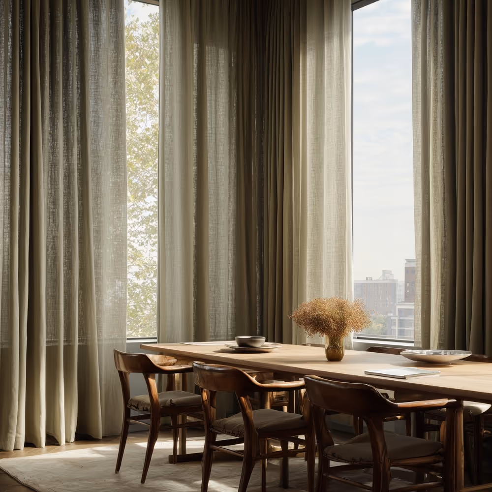 🛋 Vardagsrum/allrum – akustikgardiner dämpar eko och gör TV-ljud och samtal tydligare, vilket skapar en mer harmonisk miljö för hela familjen.